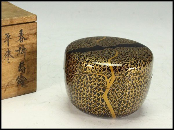 - 【金閣】茶道具 時代 柳蒔絵 平棗 旧家蔵出 送料無料(A650)