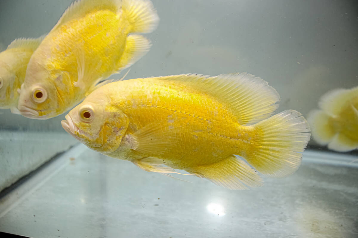 - 新種!過背金龍のお供に!『 ウルトライエロー・オスカー 』14~15cm± 真っ黄色な極美個体! アロワナの目垂予防に推奨!