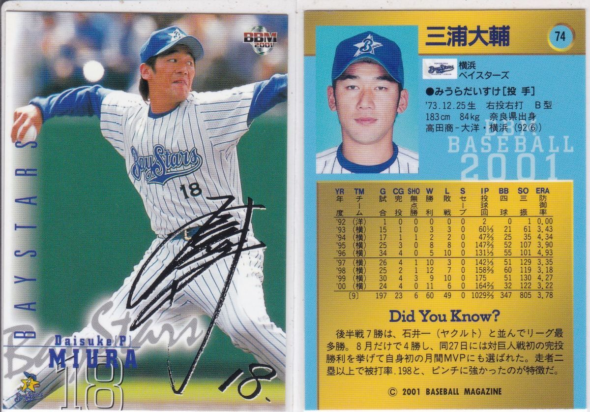 - ●2001BBM/1st 【三浦 大輔】 黒色サインパラレル No.74:横浜 R2