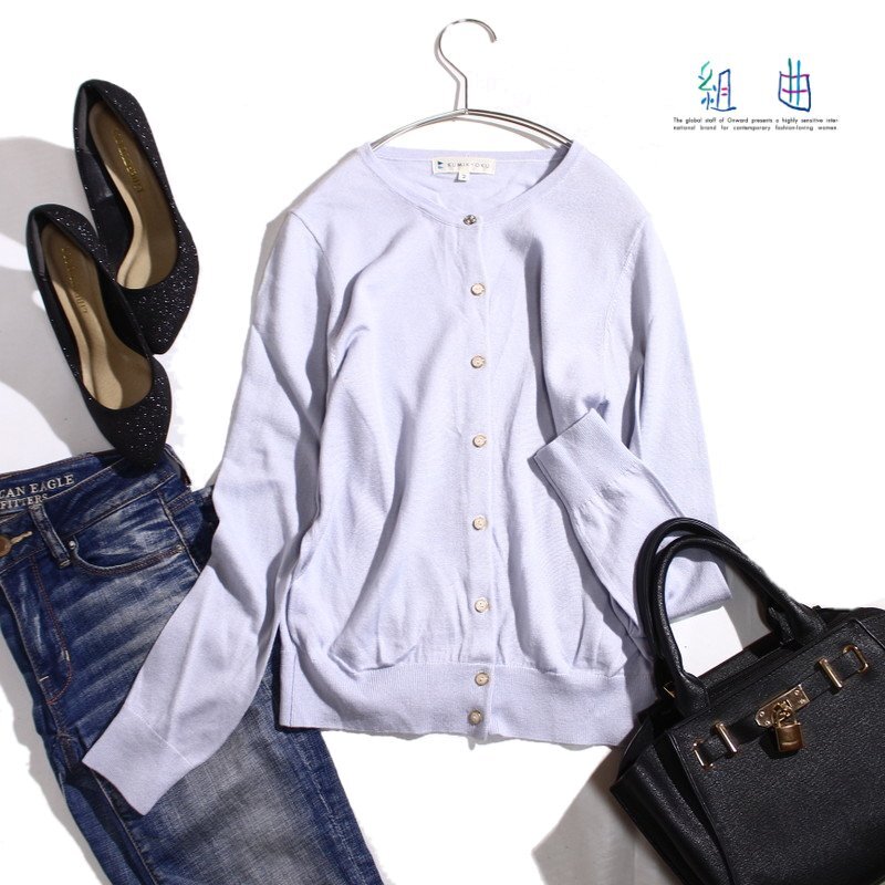 - 美品 組曲 クミキョク 株) オンワード樫山 毛49% 長袖カーディガン 薄手 Mサイズ オフィス カーディガン ニットカーディガン 通勤 羽織
