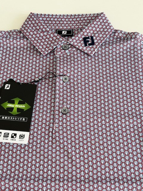 - FJ フットジョイ スカロップシェルプリント半袖ワイドカラーシャツ FJ-S24-S15 (コーラルレッド) XXL