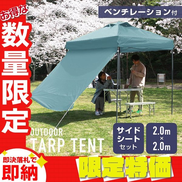> 【限定セール】サイドシート付 タープテント 2m ベンチレーション 収納ケース 撥水 スチールフレーム UVカット アウトドア BBQ イベント