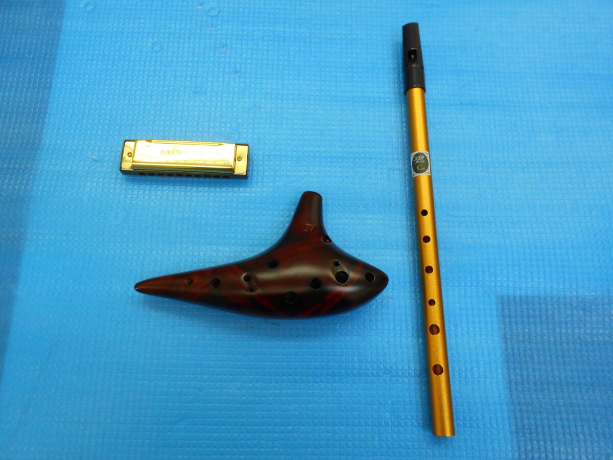 - オカリナ・ハーモニカ・縦笛3点セット 初心者 入門セット 練習用 アルコール除菌済み【A0172】