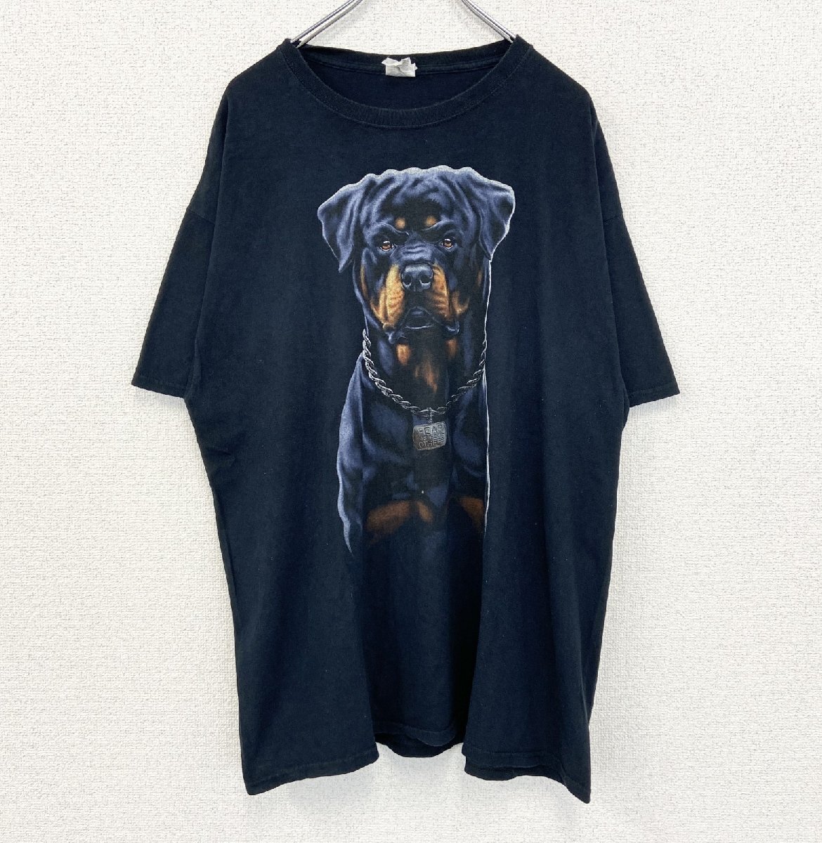 - 古着 used FRUIT OF THE LOOM 半袖プリントTシャツ ロットワイラー カジュアル クルーネック 黒 XLサイズ