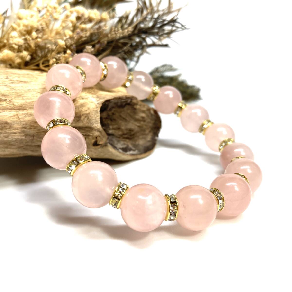 > ローズクォーツ パワーストーン ブレスレット 12mm 天然石ブレス (ゴールド) 数珠ブレス メンズ・レディース 男性 女性 幸運 開運 浄化