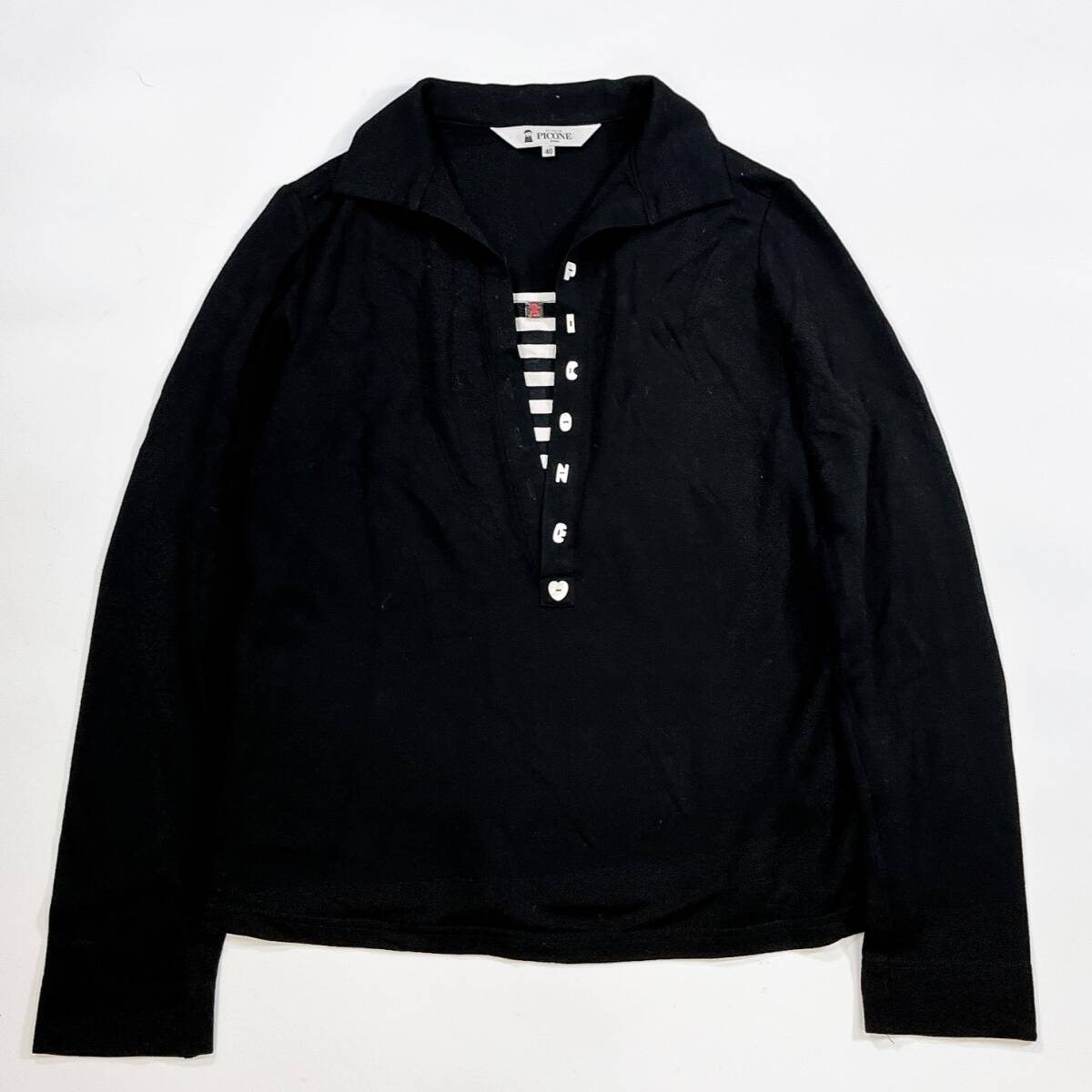- PICONE CLUB ピッコーネクラブ 長袖 シャツ 襟付き トップス 飾りボタン ブラック 重ね着風 40 L ウール混 レディース ☆772y