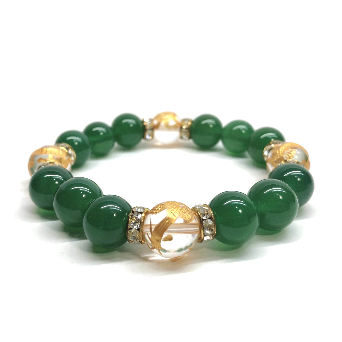 - 四神獣金彫水晶×緑瑪瑙 12mm パワーストーン ブレスレット天然石 青龍 白虎 玄武 朱雀 運気上昇 お守り 金運 健康運 四神獸 四神相応 G