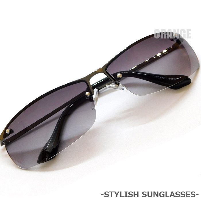 - 送料無料 オラオラ系 チョイ悪系 ハーフリム型 サングラス メンズ 男性用 UVカット 伊達メガネ 伊達眼鏡 ドライブ スモークハーフレンズ□