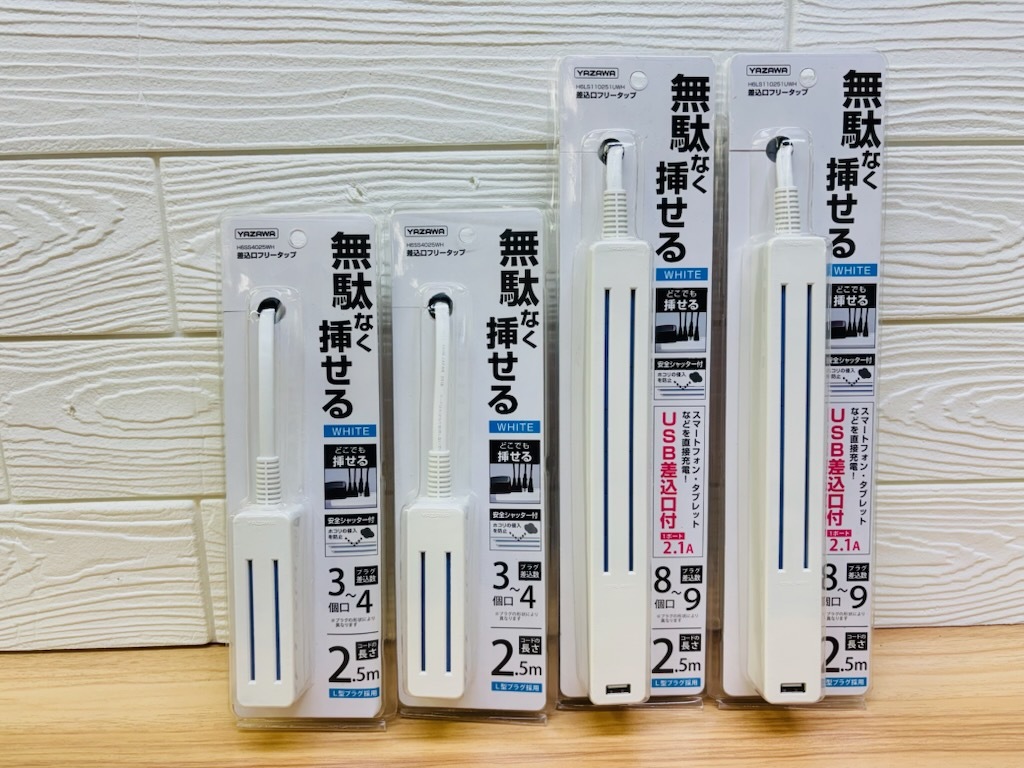 - A931 ヤザワ 差込口フリータップ ロング 4点セット 2.5 8~9個口&3~4個口 便利なUSBポート付き 電源タップ 引っ越し