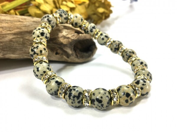> ダルメシアンジャスパー パワーストーン ブレスレット 天然石ブレス 10mm メンズ・レディース (ゴールド) 浄化 数珠ブレス ☆