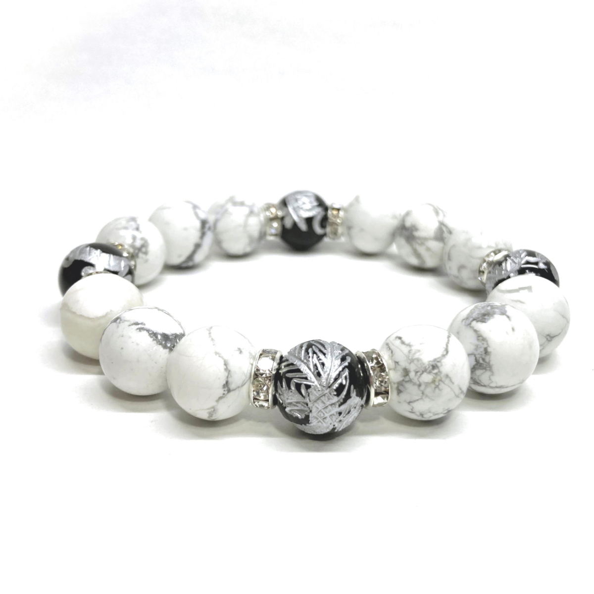 - 四神獣銀彫オニキス×ハウライト 12mm パワーストーン ブレスレット天然石 青龍 白虎 玄武 朱雀 運気上昇 開運 金運 お守り 四神相応 S