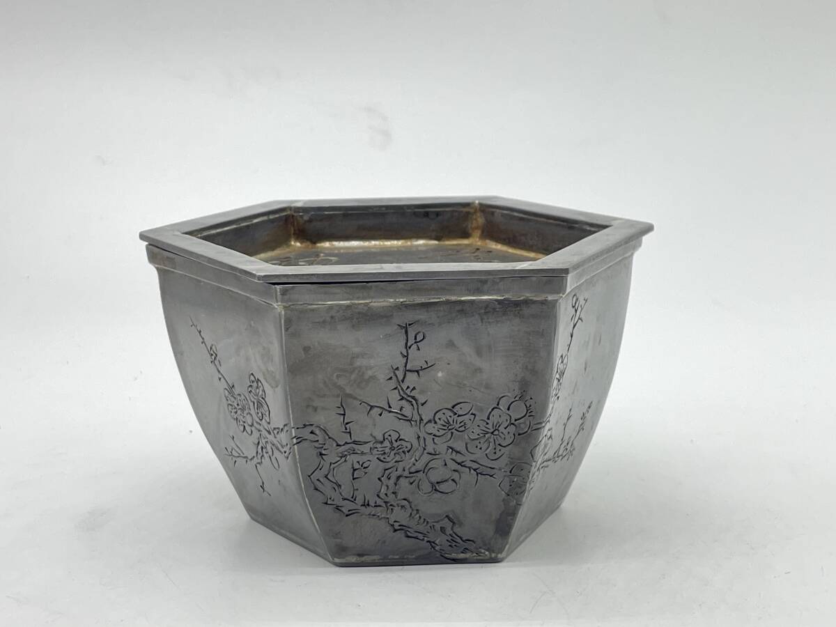 - 錫製建水 古錫 時代物 唐物 在銘 煎茶道具 蓋付 古玩 骨董 茶器 古美術 金属工芸