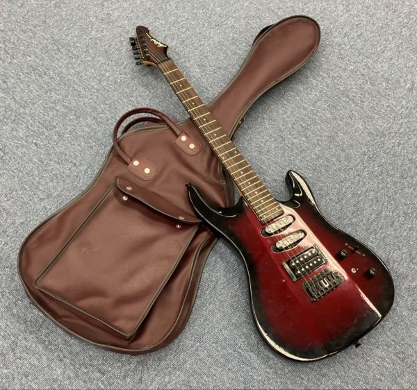 > E012-SA1-38 AriaProⅡ アリプロ2 エレキギター 6弦 楽器 ワインレッド 音楽 ミュージック ケース付き ※通電確認済み