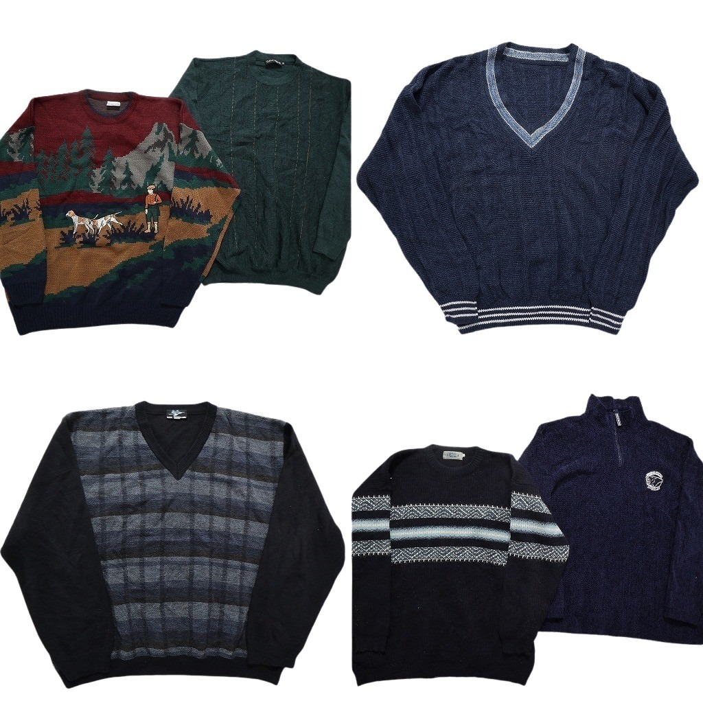 - 古着卸 まとめ売り ニットMIX セーター 6枚セット (メンズ 3XL ) ハーフジップ マウンテン ドッグ チルデンニット NC3559 1円スタート