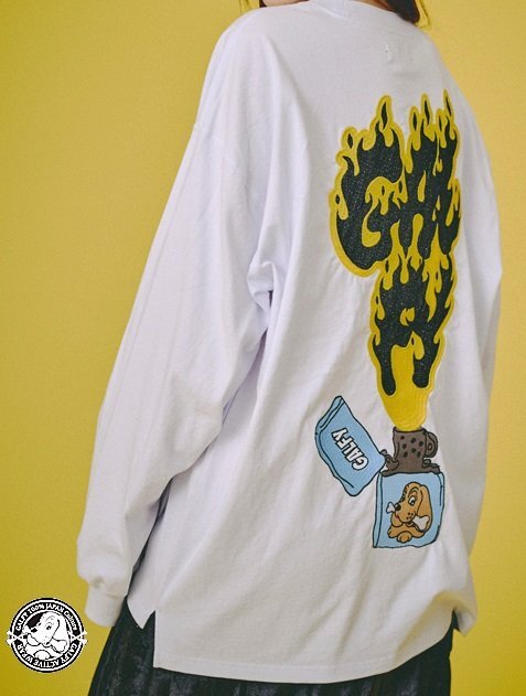 > FIREライターロングTシャツ◆GALFY ホワイト Mサイズ(小型犬) 153086 ガルフィー ゆったりめ オーバーサイズ ユニセックス
