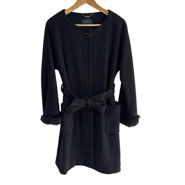 - シップス SHIPS サイズS - 黒 レディース 長袖/ノーカラー/ラビットファートリム着脱可/秋/冬 美品 コート