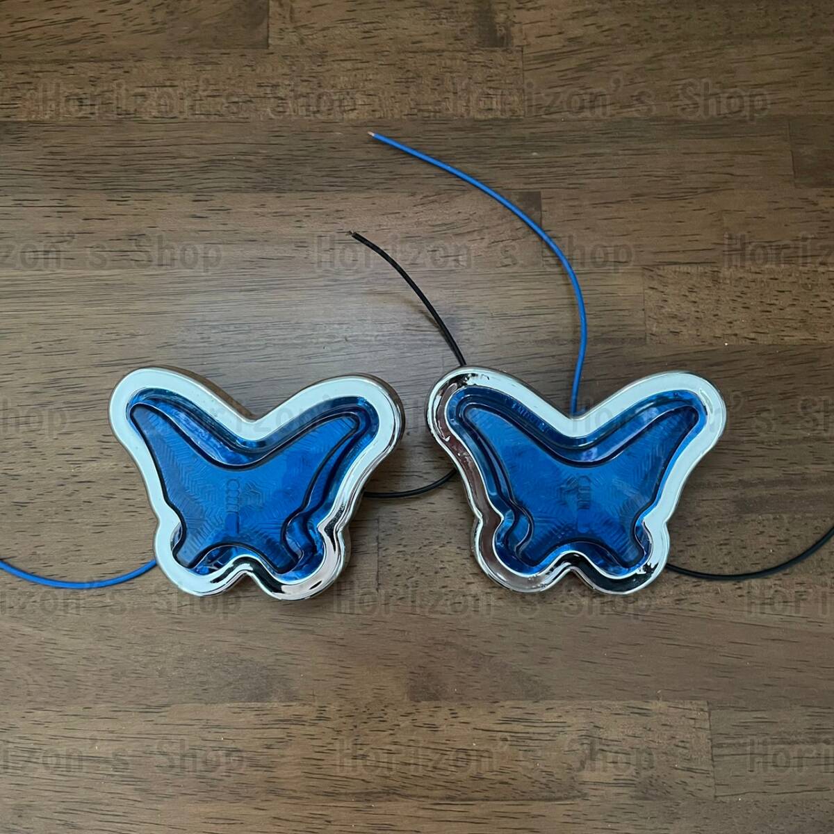 > 【2個セット】 バタフライ サイド マーカー 蝶 形 12V 24V トラック デコトラ 車 左右 外装 ランプ 旧車 ブルー
