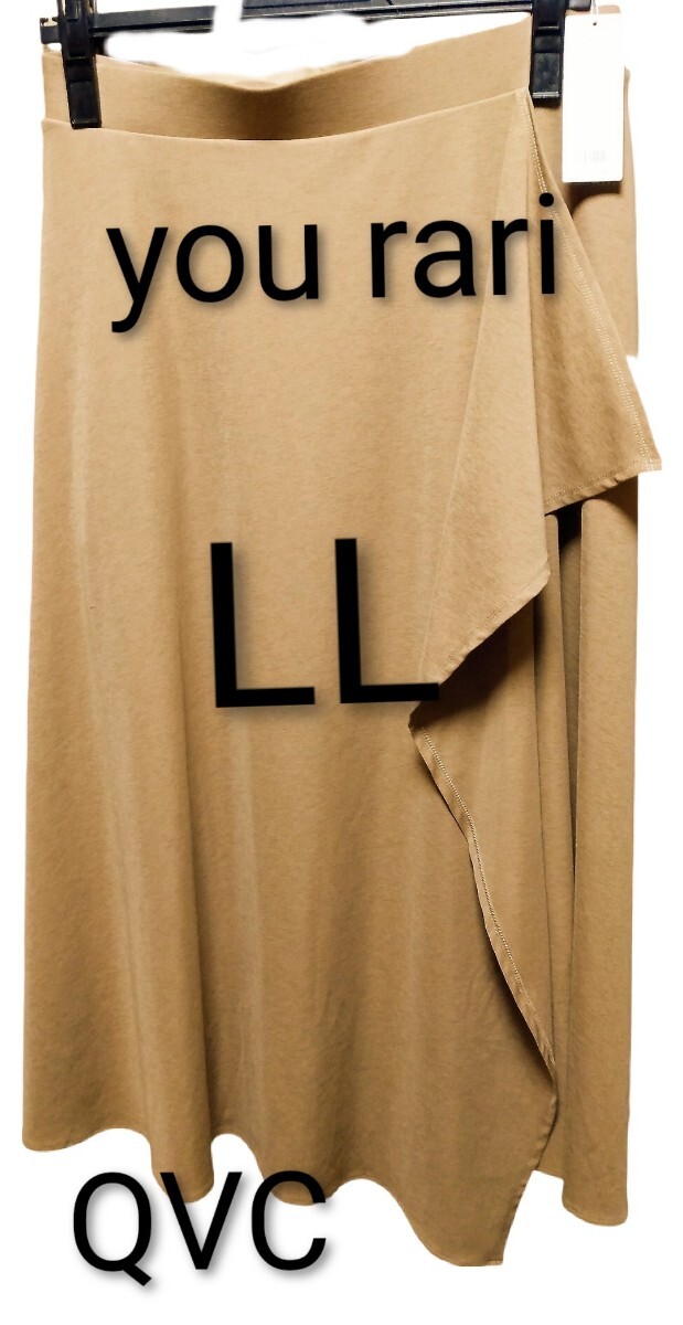 - ユラリQVCドレープジャージースカートLL新品タグ付キャメルベージュ系