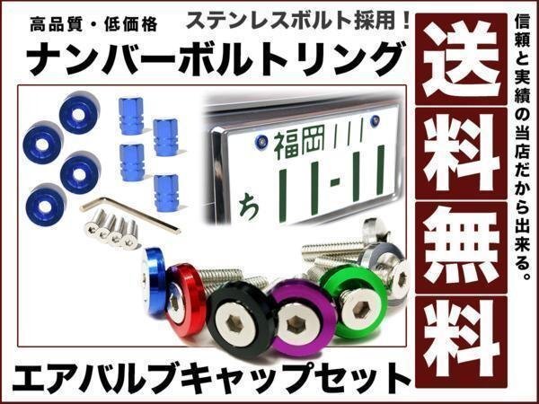 - ステンレス製 ナンバーボルトリング エアバルブキャップset青 ブルーアルマイトカラー ロングボルト 送料無料