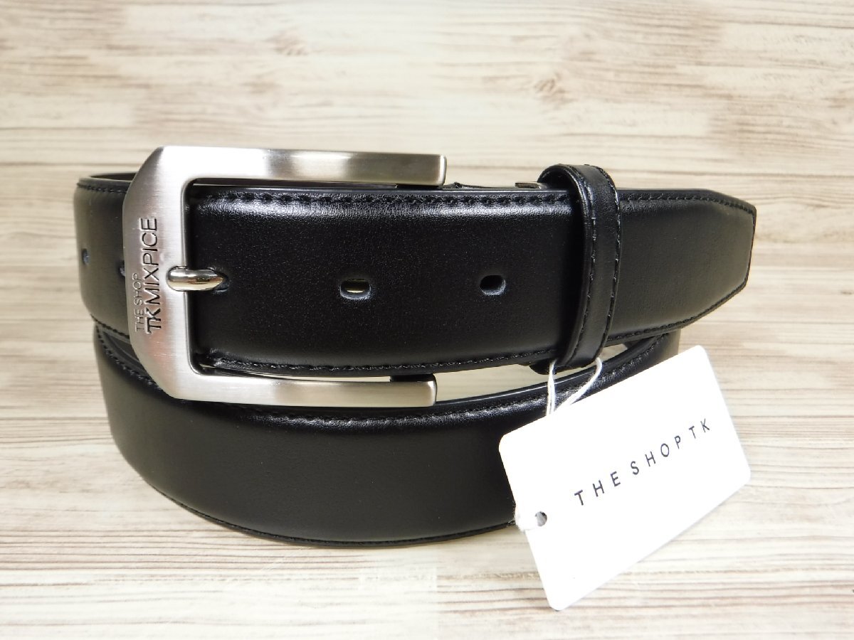 - V284 タケオキクチ 日本製新品 黒 35mm 幅広 ロゴバックル 牛革 レザーベルト ビジネスベルト カジュアル THE SHOP TK TAKEO KIKUCHI