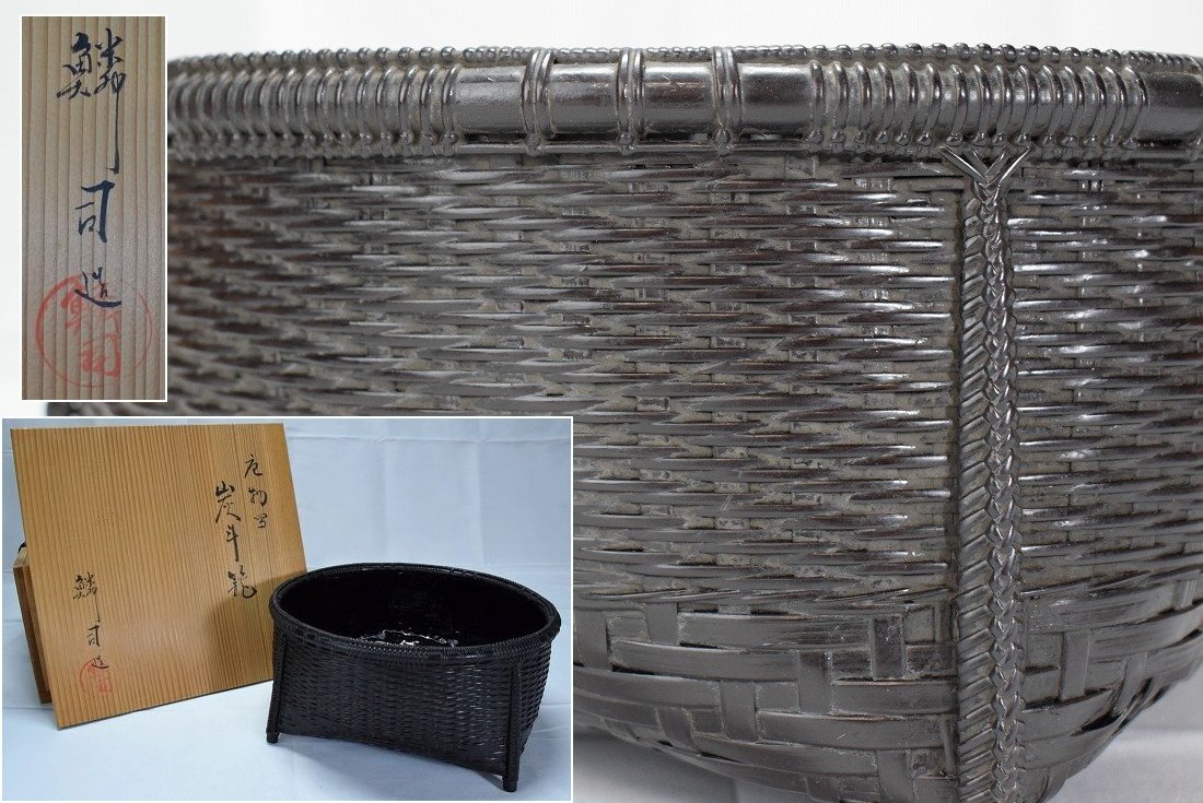 和田鱗司 唐物写 炭斗籠 竹編 炭籠 炭取 竹籠 共箱 煎茶道具