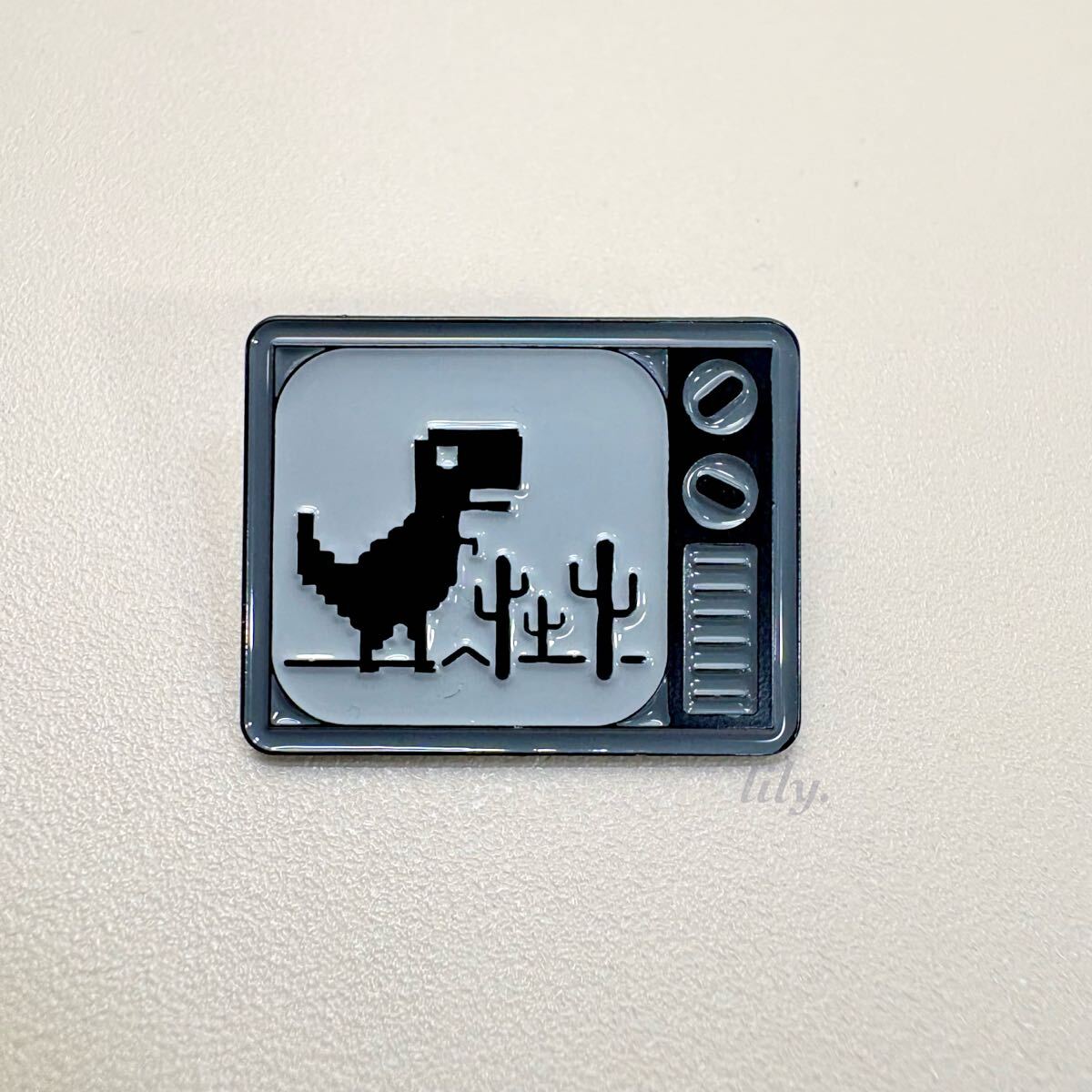 - 【ピンバッジ】恐竜 ピクセル モノクロ レトロ テレビ