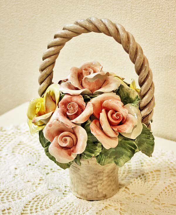 イタリアの伝統工芸、カポディモンテ焼きの陶花の置物です。