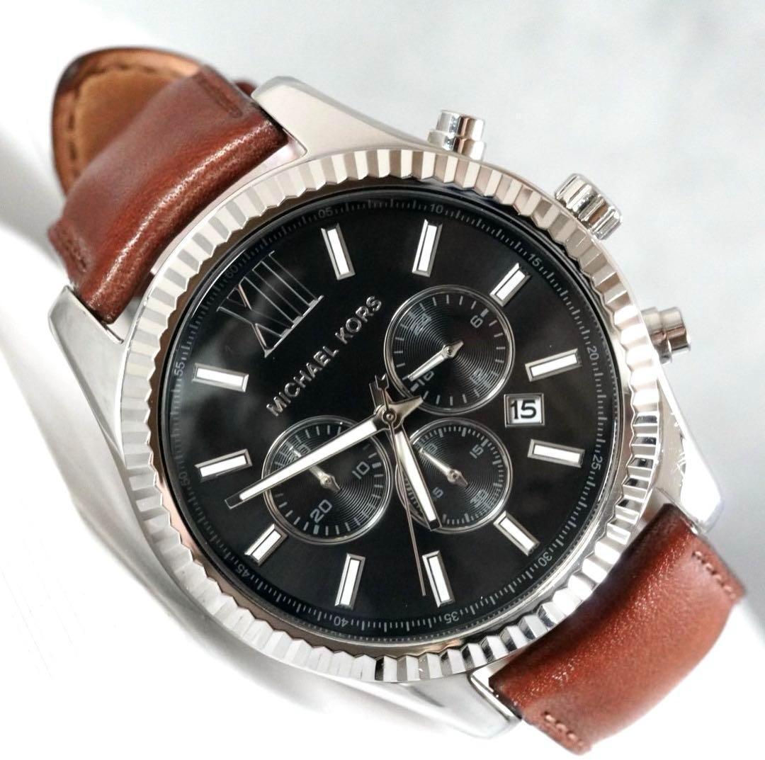 - 1円 スタートMichael Kors マイケルコース レキシントン クロノグラフ ラウンド メンズ 腕時計 美品 稼働品 新品電池 1スタ