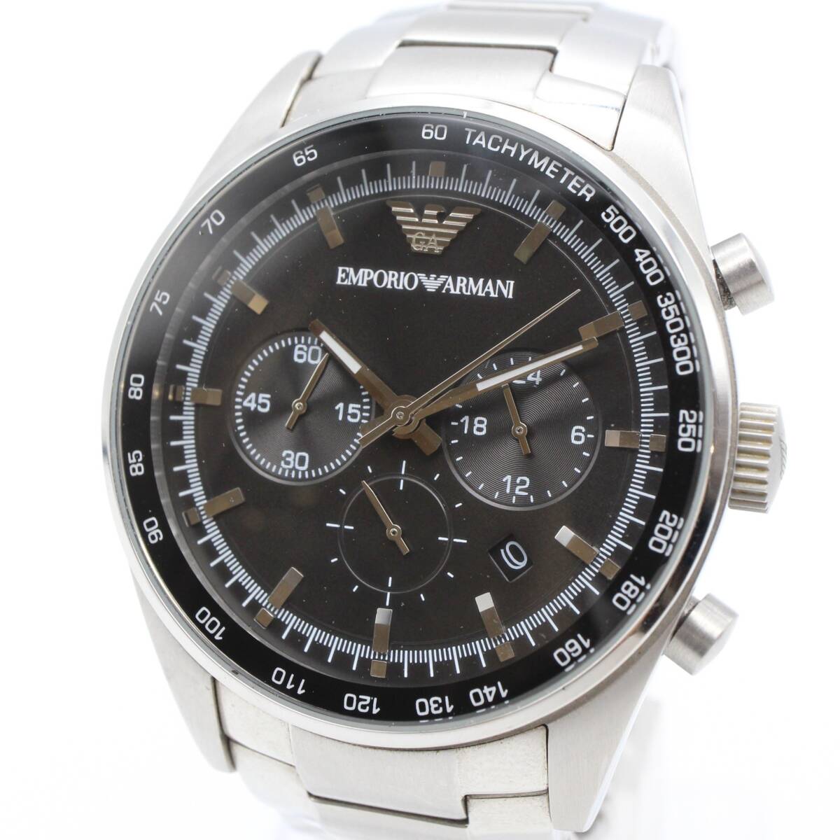 - 電池交換済み 【EMPORIO ARMANI エンポリオアルマーニ】 AR-5980 クロノグラフ デイト クォーツ/QZ メンズ 腕時計 ブラック文字盤 稼働