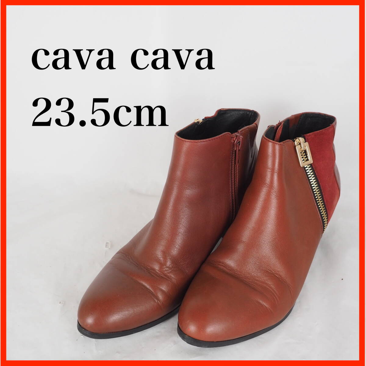- GB0707*cava cava*サヴァサヴァ*レディースショートブーツ*23.5cm*赤茶
