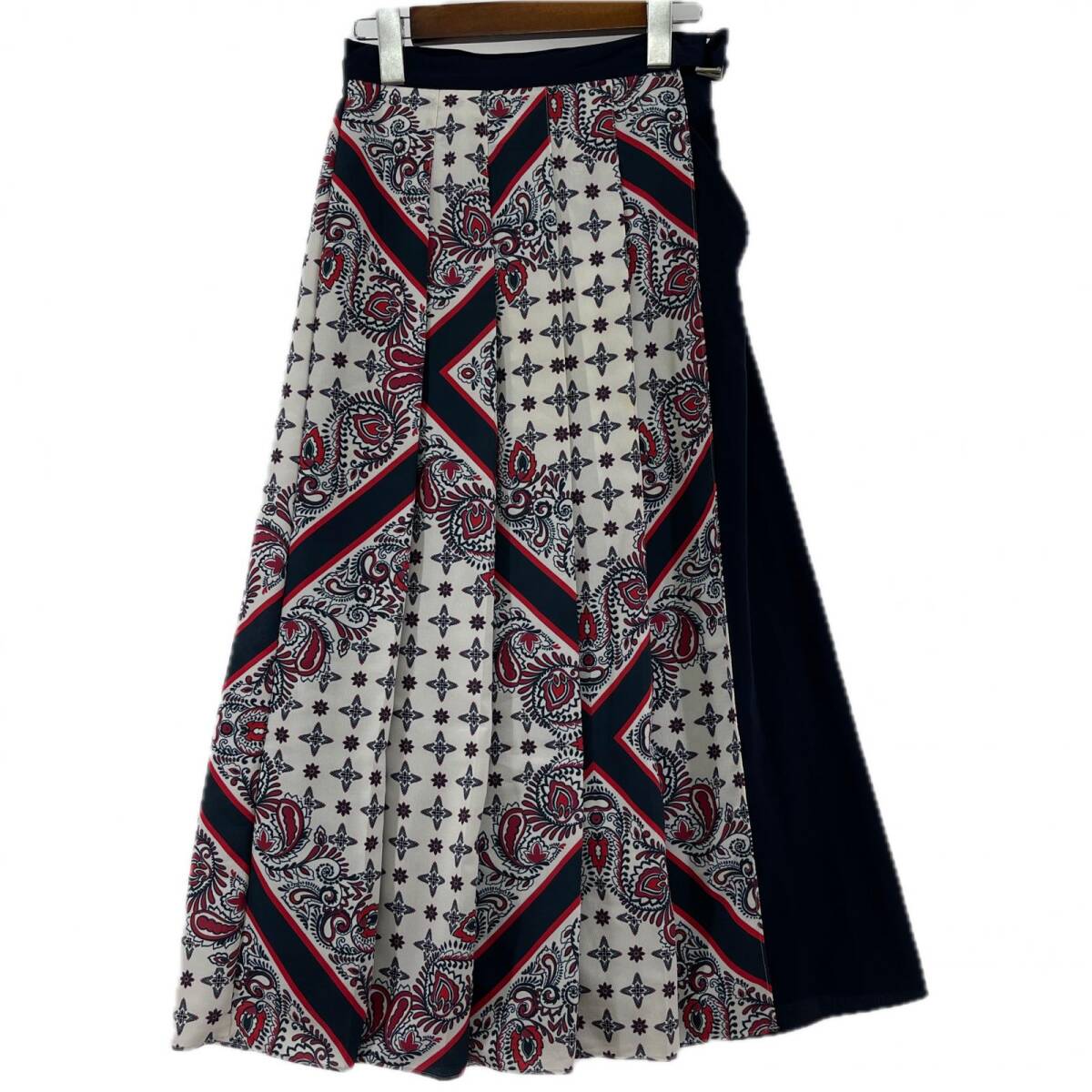 - BARNYARDSTORM バンヤードストーム 総柄 ラップ スカート size1/ホワイト×ネイビー