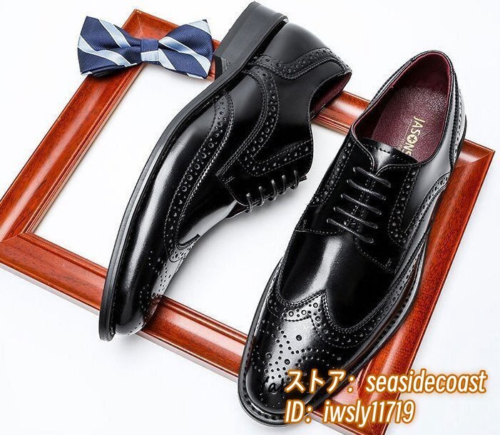 > 高級品 レザーシューズ 本革 ビジネスシューズ新品 メンズシューズ皮靴ウイングチップ フォーマル 職人手作り 彫り 紳士靴 ブラック 26.5cm