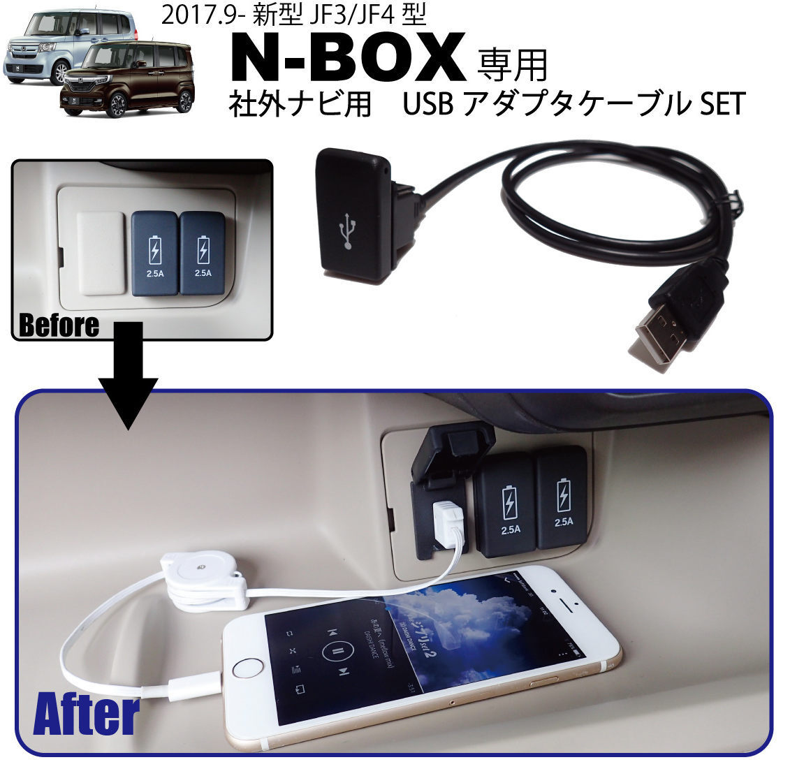 > ホンダ新型N-BOX(JF3/JF4)専用 社外ナビ用USBアダプタケーブルSET USBジャック追加に HONDA NBOX ナビ取付けキットと一緒に