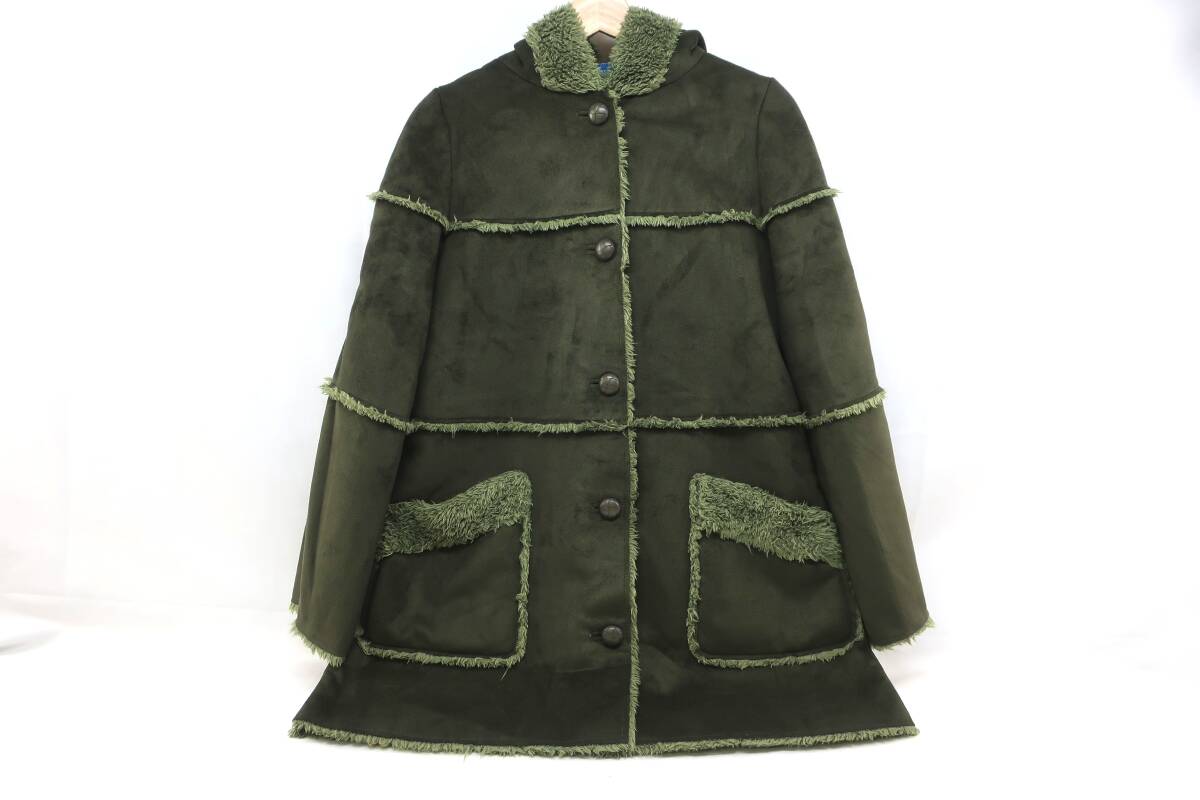 - 【送900円】2101 Jocomomola ホコモモラ ムートン風コート ポリエステル100% ファー グリーン系 フード ミディ丈 アウター 42