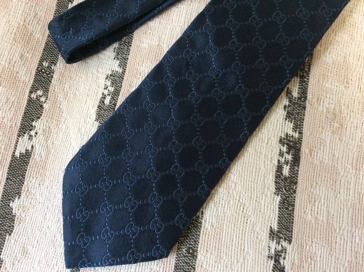 - 即決 美品 GUCCI グッチ GG柄ネクタイ ネイビー系ブルー系カラー イタリー製 天神のブランド品専門店購入 ゆうパック込み 10月21日初出品
