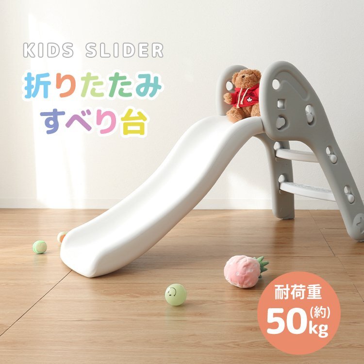 - 【未使用 ホワイト×グレー】すべり台 折りたたみ 室内 コンパクト 折りたたみすべり台 滑り台 室内遊具 キッズ 子供 プレゼント