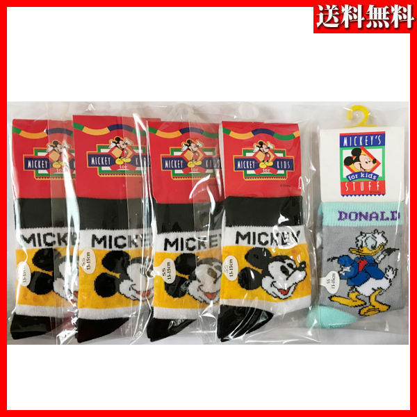 > 【 大幅値下 子供用 靴下】 MICKEY ミッキーマウス( 白×黒×黄)/ ドナルド( 灰×水色) ssサイズ( 13~15cm) 2種5点 送料無料 M10