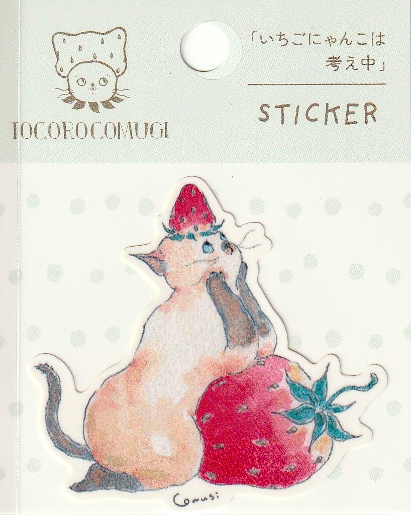 - 猫柄 猫雑貨 猫グッズ トコロコムギ ステッカー いちごにゃんこは考え中 ねこ ネコ キャット
