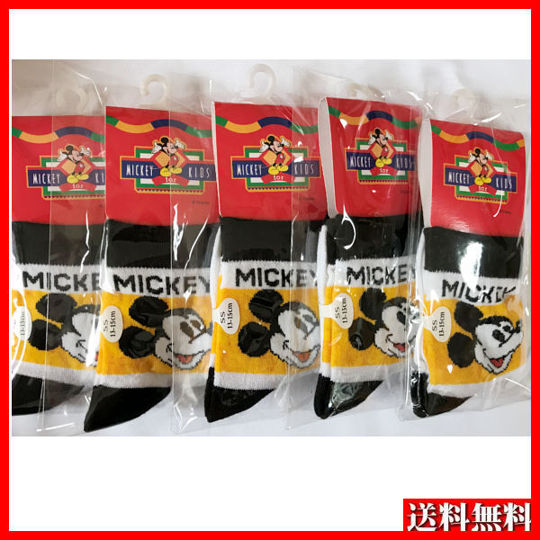 > 【 大幅値下 子供用 靴下】 MICKEY ミッキーマウス ssサイズ( 13~15cm) 白×黒×黄 5点 送料無料 M3
