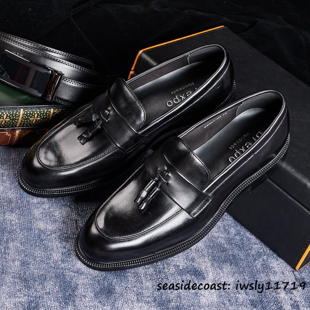 - 定価10万超■レザーシューズ メンズ タッセルローファー 本革 職人手作り ビジネスシューズ 紳士靴 冠婚葬祭 牛革 革靴 ブラック 25.5cm