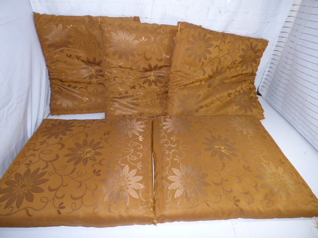 - む711【5枚セット】座布団 花柄 からし色 座敷 和室 お客様用 法要