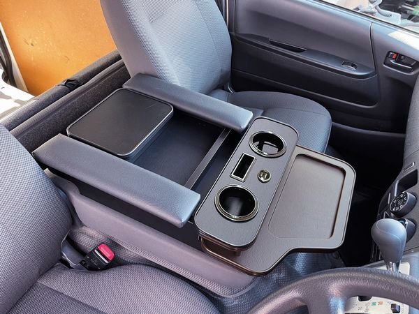 - リム フロントセンタードリンクホルダーDX V2 USBポート付 ブラックレザー[フロント3人乗] 1set ハイエース 200系 2016年8月~ 標準ボディ