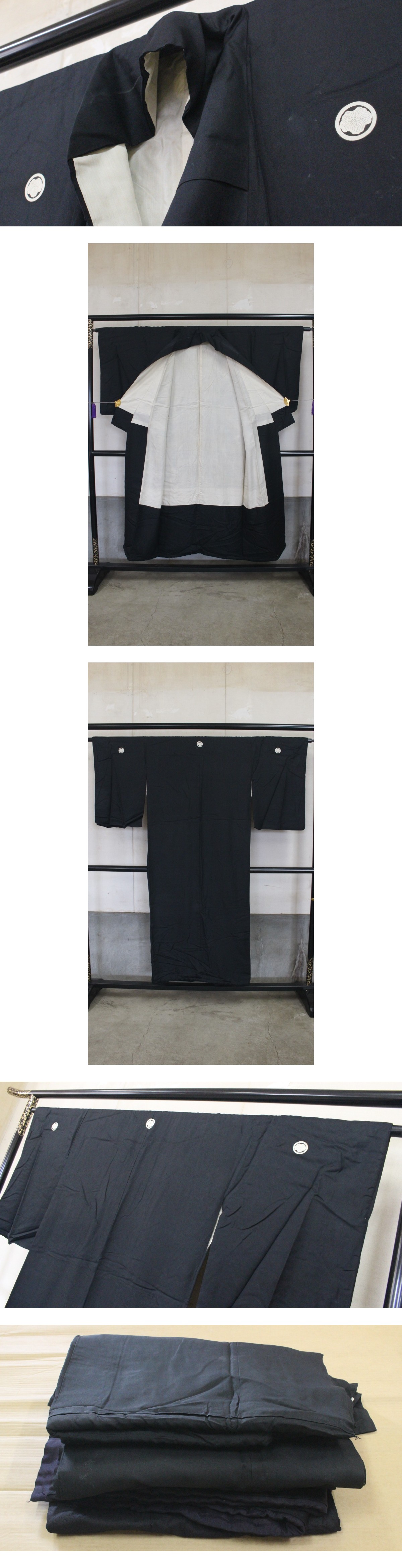 - 紋付 絹 着物 2点セット 時代物 日本和服古布アンティーク生地 ツ15