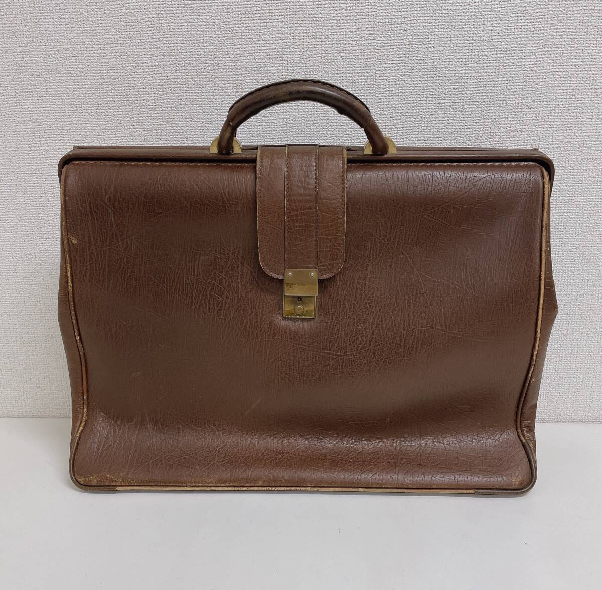 - 【アンティーク◇レザー★ドクターバッグ】鍵付き/本革かばん/皮革トランク鞄/撮影小物/オブジェ/店舗什器/A710-235
