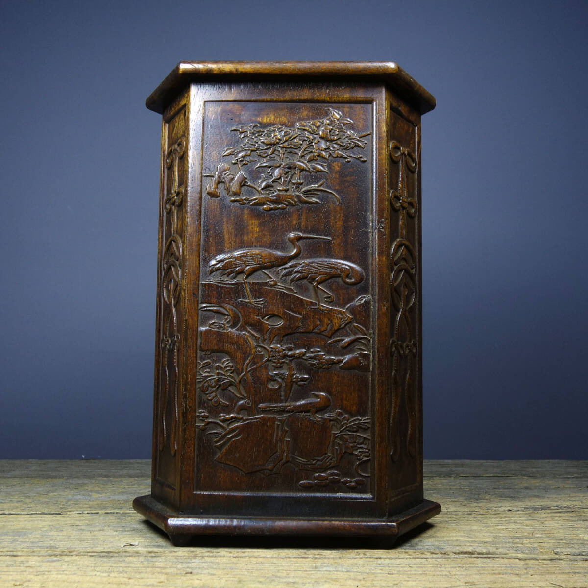 - 館蔵 花梨木彫 花開富貴 筆筒 古董品 時代物 賞物 貴重 稀少珍品 中国古美術 古美味 蔵出