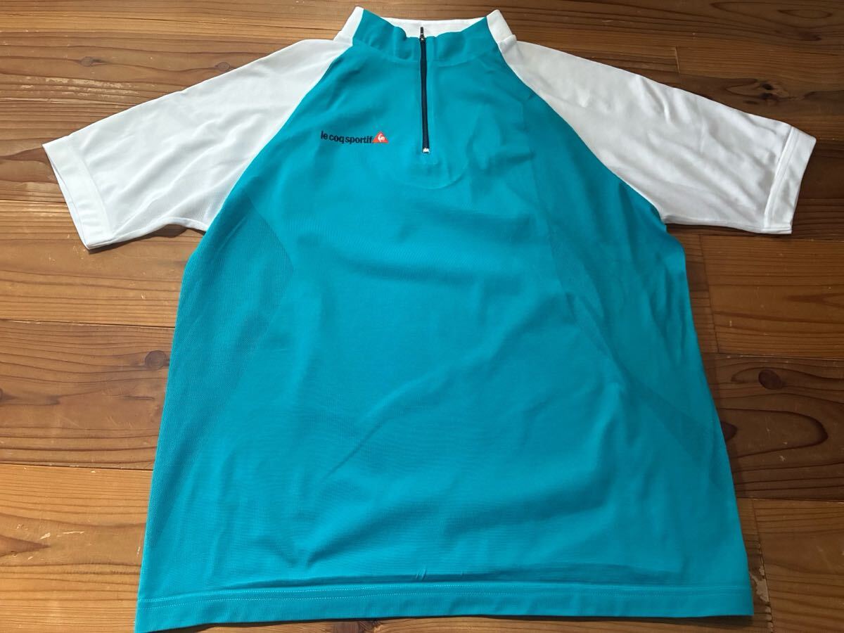 > 送料込み!! le coq sportif ハーフジップ 半袖Tシャツ 水色 Mサイズ ルコック GOLF ゴルフウェアー 半袖シャツ