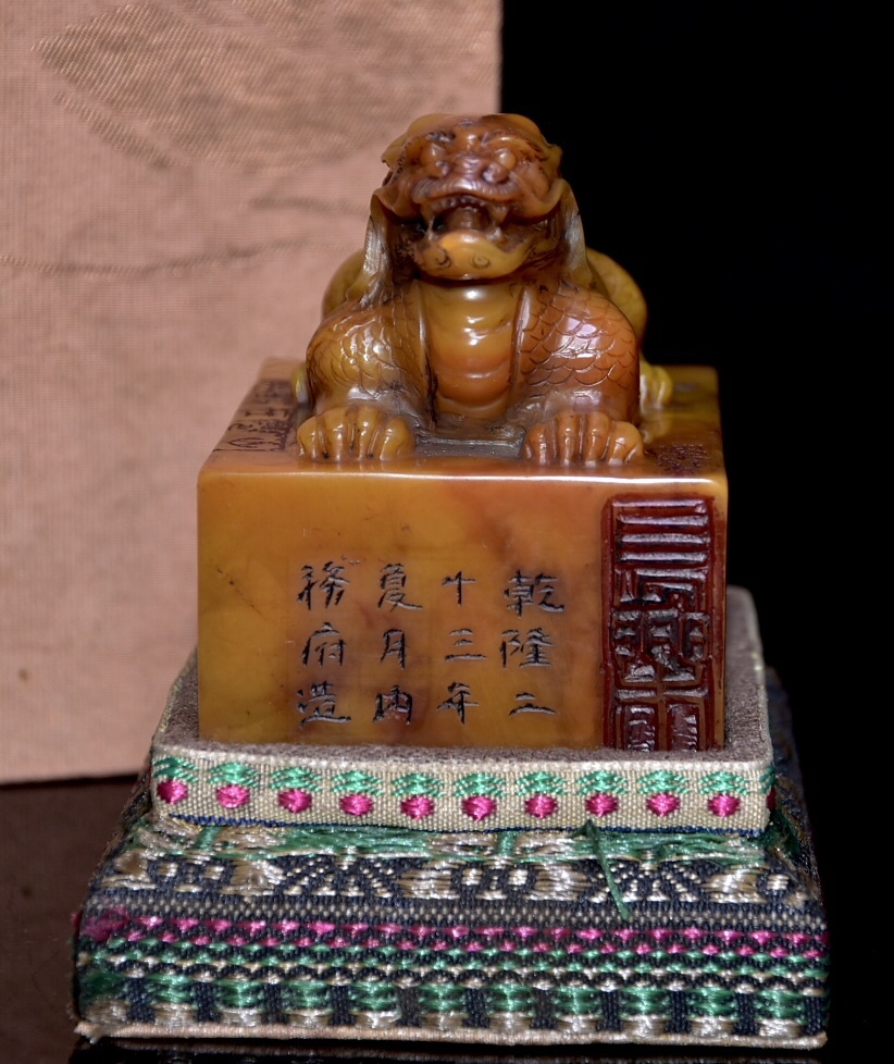 - ▽鴻▽清朝時代 寿山石 田黄石彫 龍鈕玉璽印章 乾隆二十三年内務府造弁処監製 箱付 時代物 中国古美術 骨董品