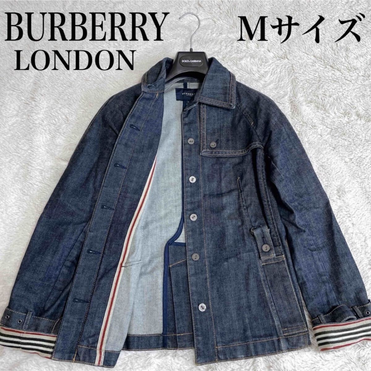 > 美品 BURBERRY デニムジャケット カバーオール ストライプ バーバリー ノバチェック インディゴ ブルゾン