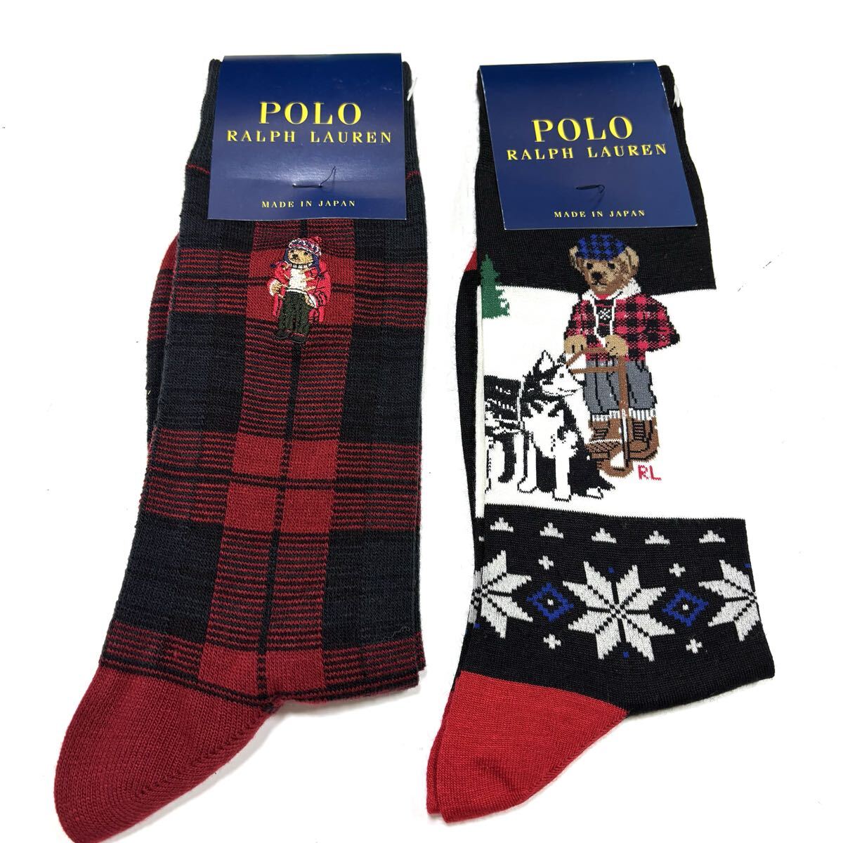 - 45 新品 ラルフローレン 靴下 ソックス 2足 ポロベア 送料無料 秋冬 f'