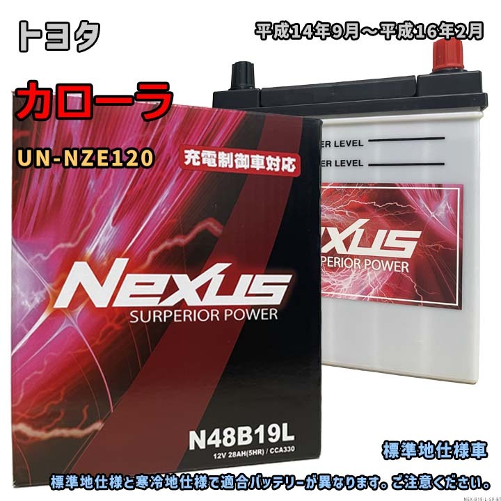 - バッテリー NEXUS N48B19L トヨタ カローラ UN-NZE120 平成14年9月~平成16年2月 対応 B19L 互換 59